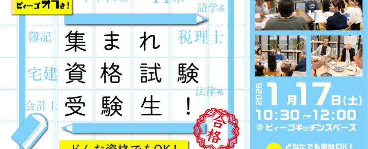 ビィーゴオフ会「集まれ 資格試験受験生!」1/17開催