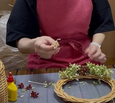 大人の手習い時間:ドライフラワーで彩る「KIKATA」ラタンリース