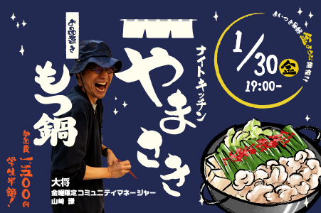 1/30(金)開催 ナイトキッチンやまさき「もつ鍋」