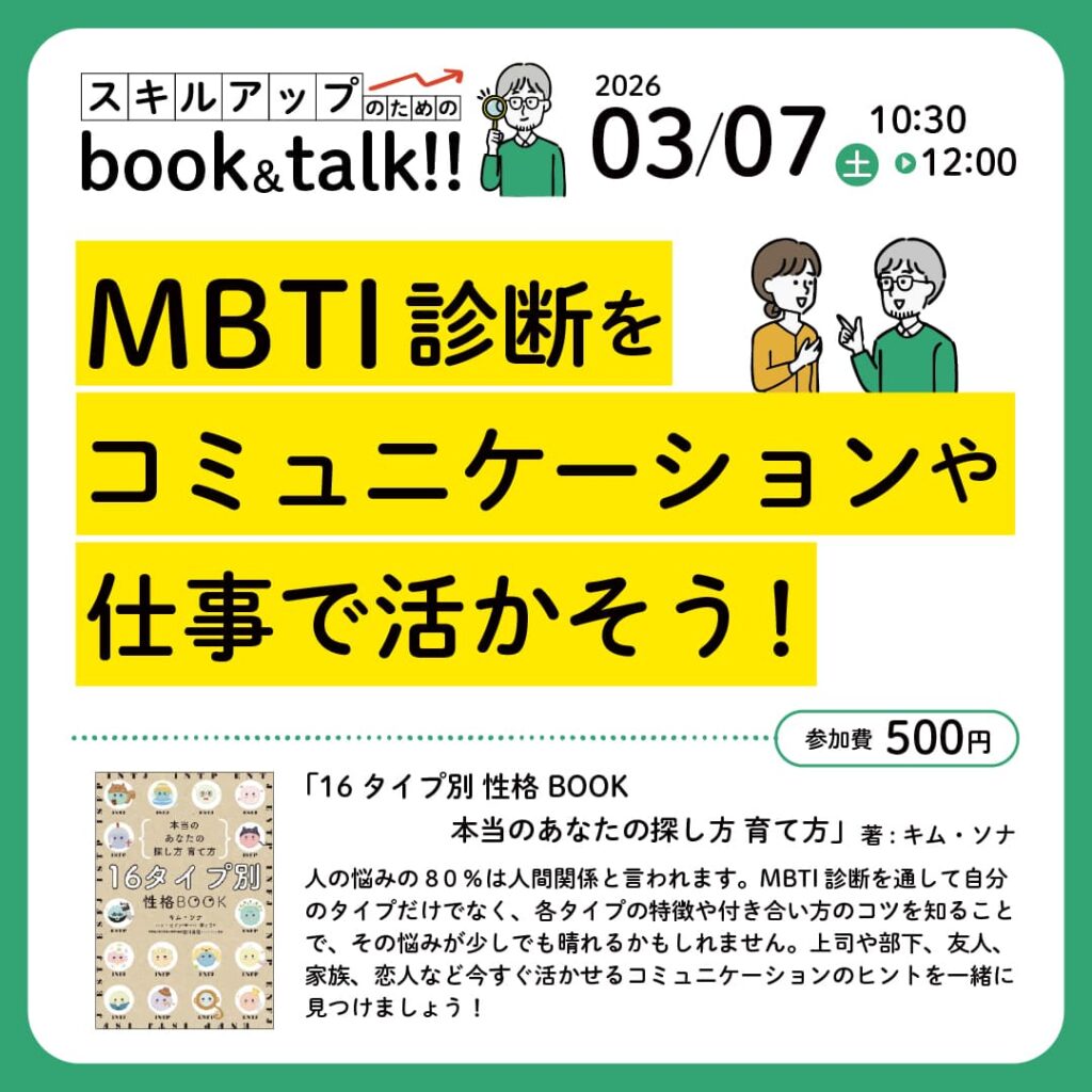 スキルアップのためのbook&talk Vol.3「MBTI診断をコミュニケーションや仕事で活かそう!」3/7開催