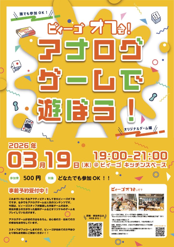 2026年3月19日 (木)19:00〜21:00 ビィーゴオフ会!「アナログゲームを楽しもう! オリジナルゲーム編」を開催します!
