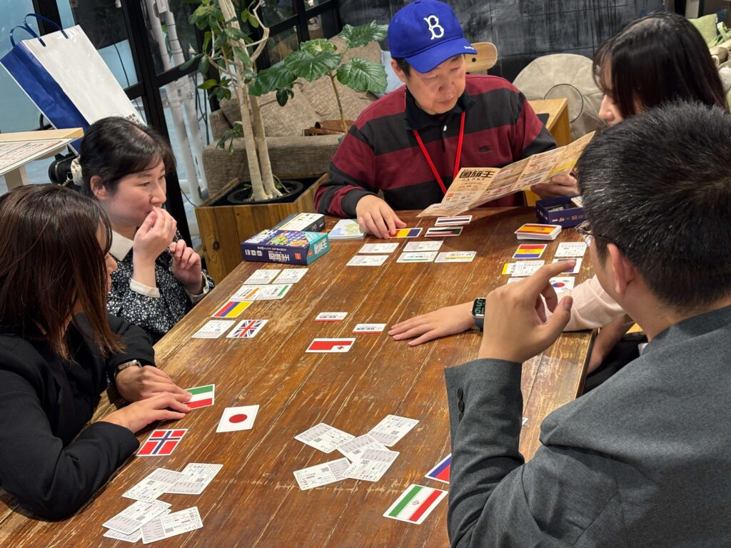 国旗が書かれた手札を「人口が多い(少ない)国は?」、「面積が大きい(小さい)国は?」などのお題に応じて出し、勝敗を競うゲームです。このゲームをやった頃は、関西・大阪万博の閉幕直後だったこともあり、世界各国のパビリオンの話など万博の思い出話で盛り上がりました。