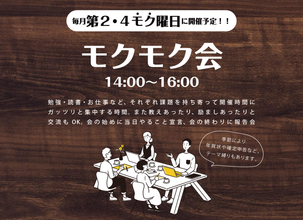 毎月第2・第4木曜日にモクモク会を開催します!