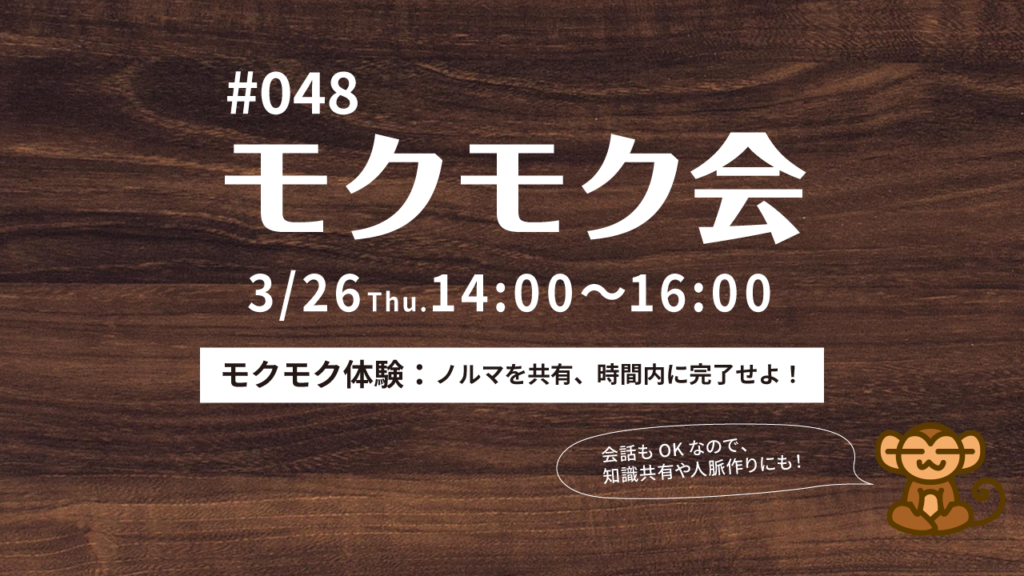 モクモク会を開催します!やりたいことを一緒に進めませんか?#48 3/26開催