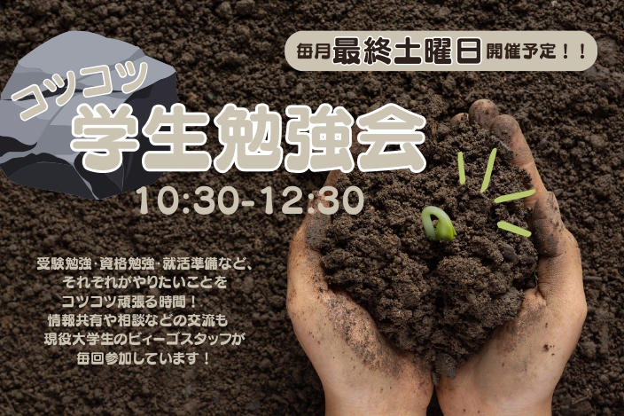 2026年5月30日(土)10:30〜12:30に、ビィーゴキッチンスペースにてコツコツ学生勉強会開催!✨