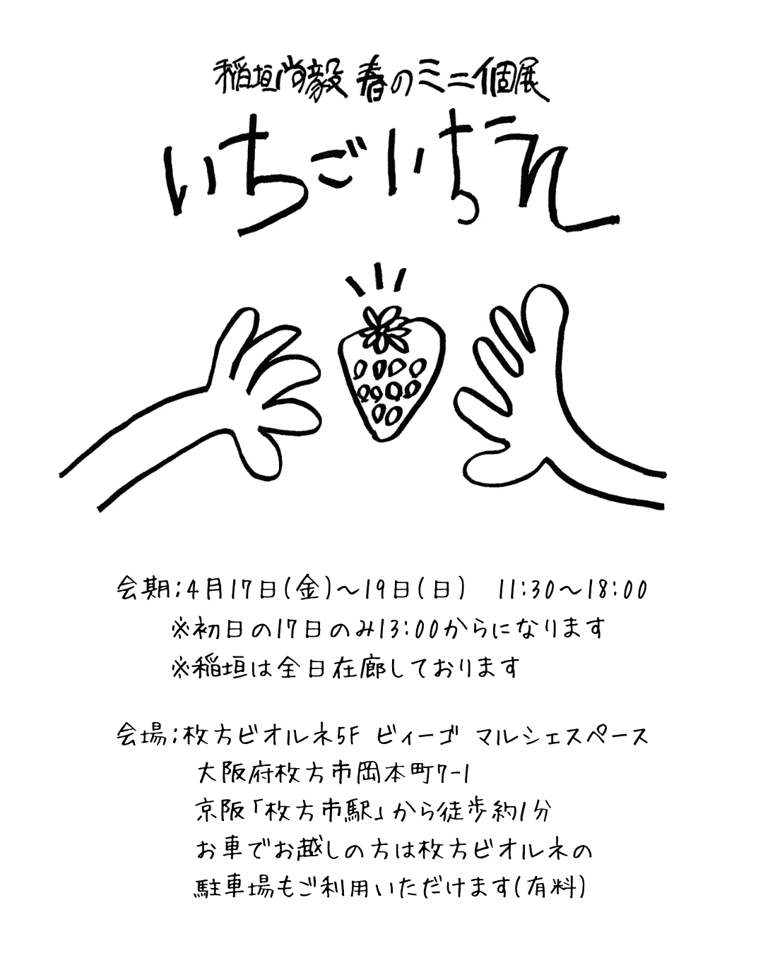 稲垣尚毅 春のミニ個展「いちごいちえ」4/17~19開催