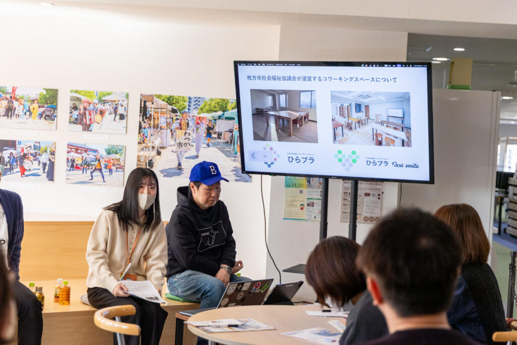枚方市内にある5つのコワーキングスペースの運営者がその魅力を紹介するイベントです。ビィーゴからは、スタッフのひらいわがスピーカーとして登壇。私(ながはら)がファシリテーターを務めさせていただきました。