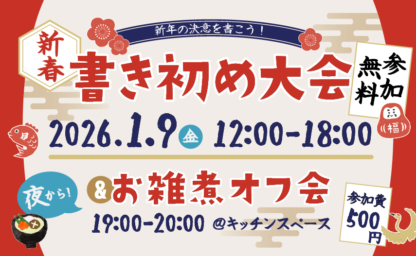 来年1月9日に新春書き初め大会開催!!お雑煮オフ会も。