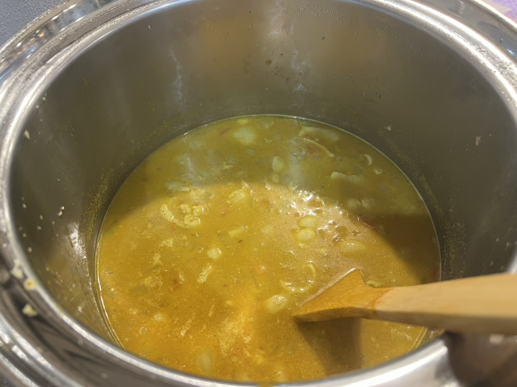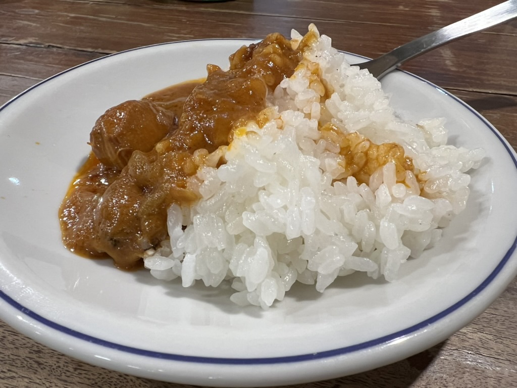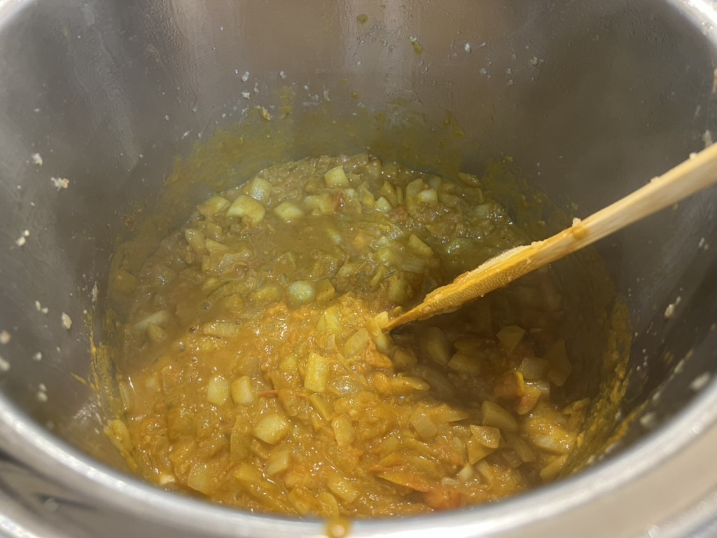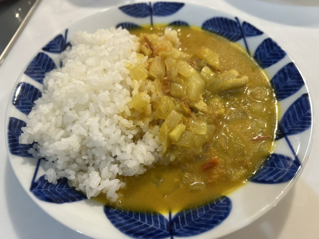 たまねぎを飴色に炒めるところからスタートしたカレーづくり。さらっとしたスパイシーなチキンカレーができました。