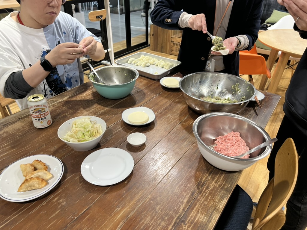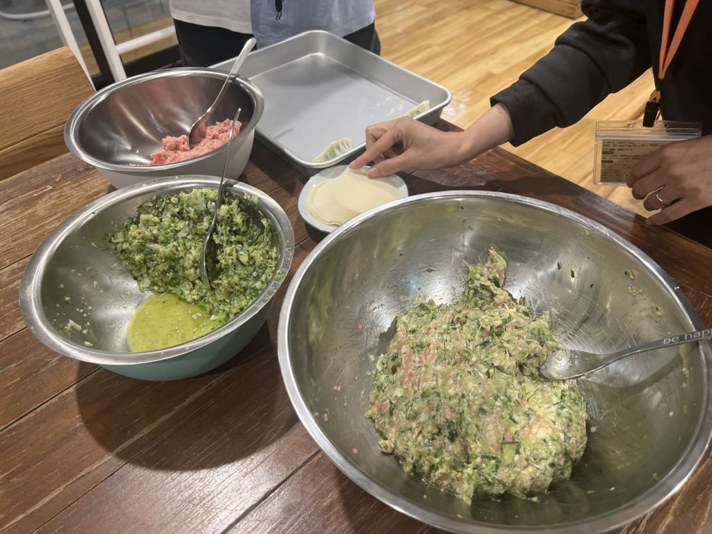 かわりに普通のゼナで、野菜あん、肉あん、両方入ったあんの3種類のあんを用意し、参加者に包んでもらいました。