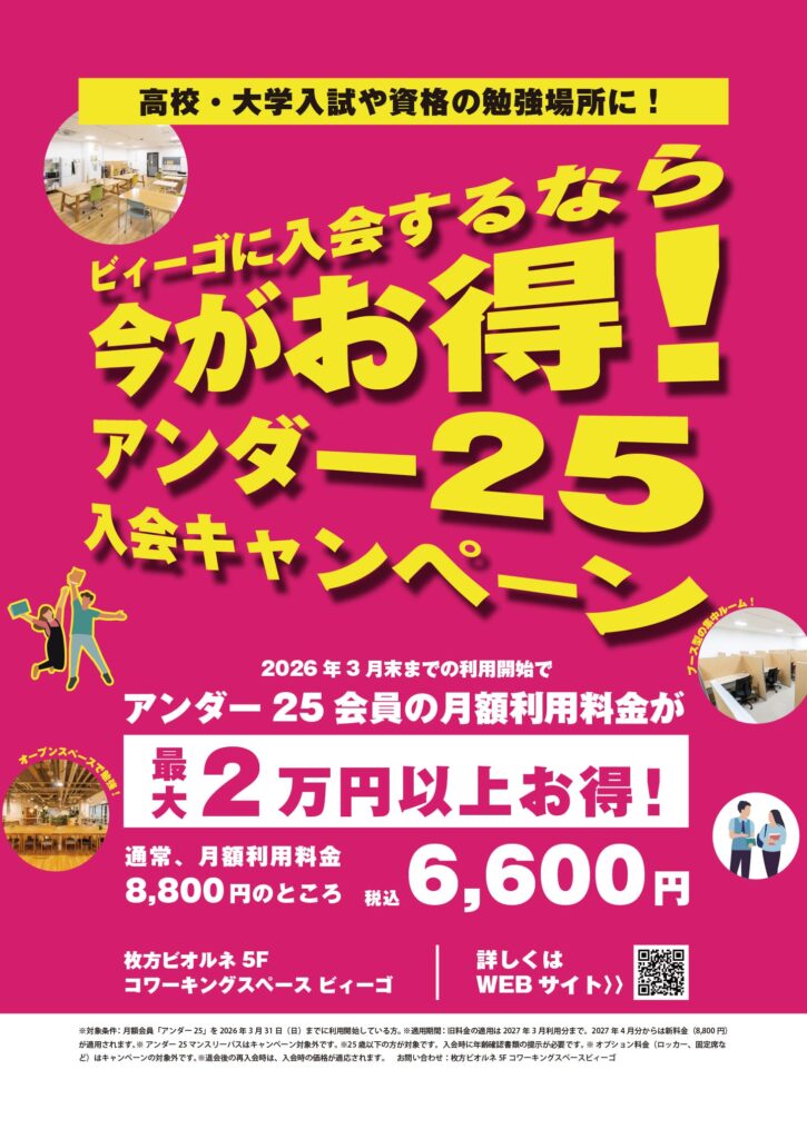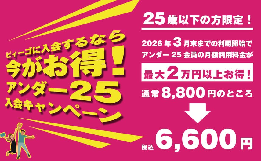 そこで、2026年3月31日(日)までに利用開始される月額会員「アンダー25」の方は、2027年3月分まで旧料金のままご利用いただける特別なキャンペーンを実施します!