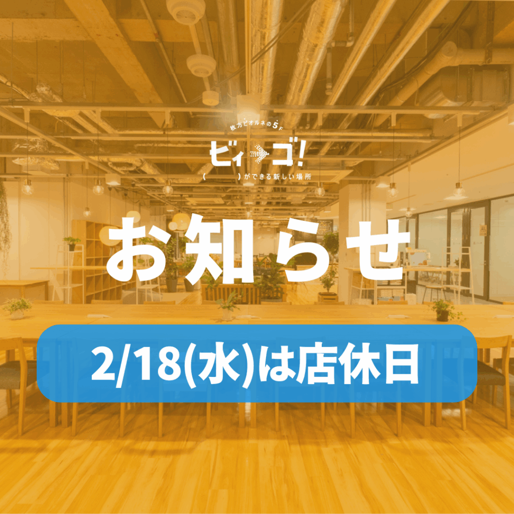 引き続き、コワーキングスペースビィーゴをどうぞよろしくお願いいたします。