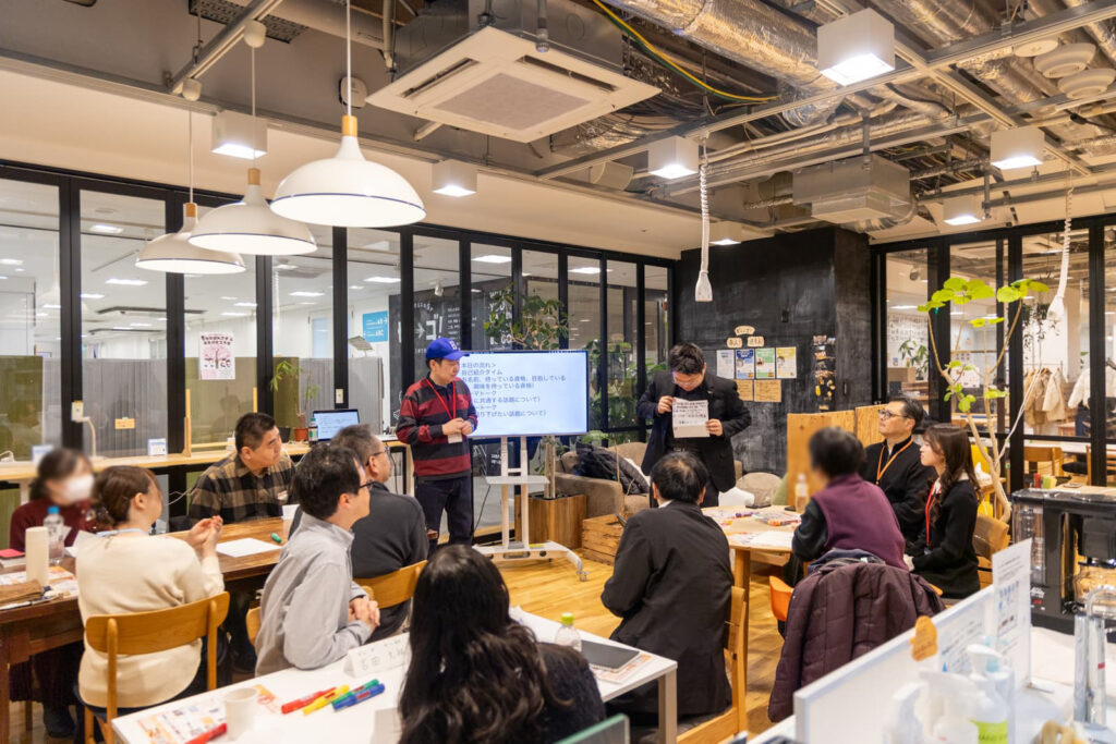 自己紹介が終わった後は、3つのグループに分かれてテーマトークタイム!グループごとに話した後、全体に発表する流れで進みました。