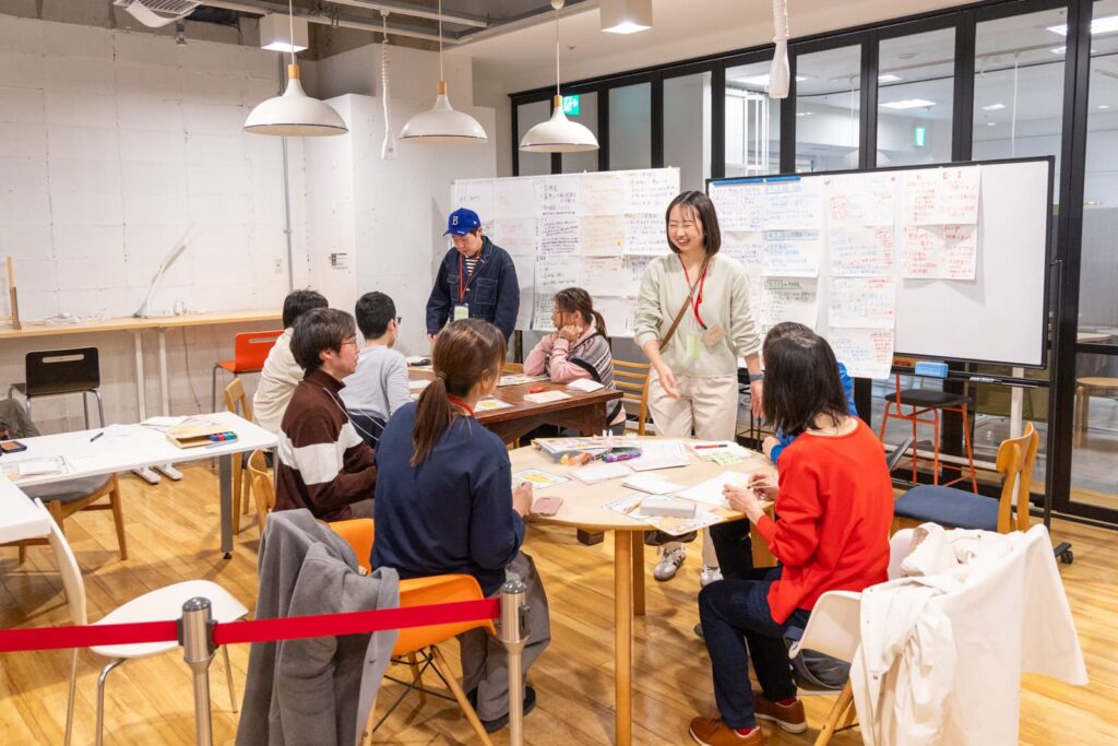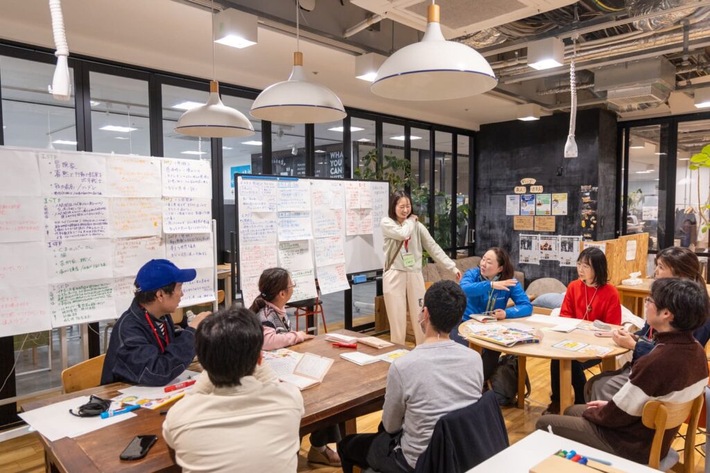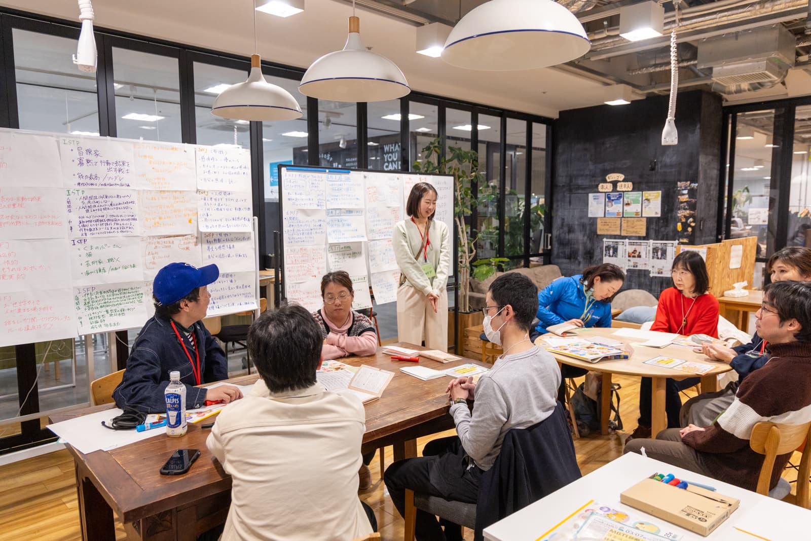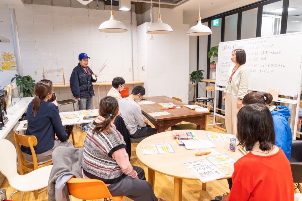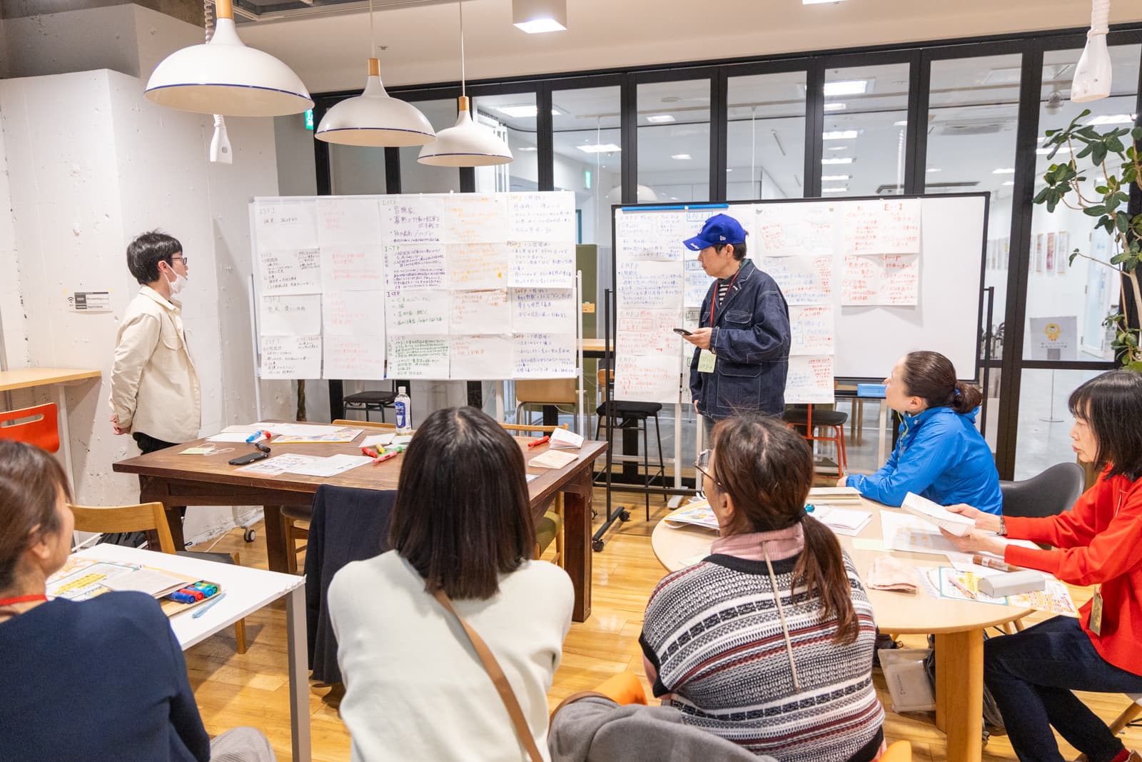 まとめた内容を一人2分程度で発表してもらいます。色々伝えたいことはあるのですが、サクッと要点だけ伝えるのがポイント。はじめにスタッフがお手本をやってみるので、みなさん続いて発表していきます。