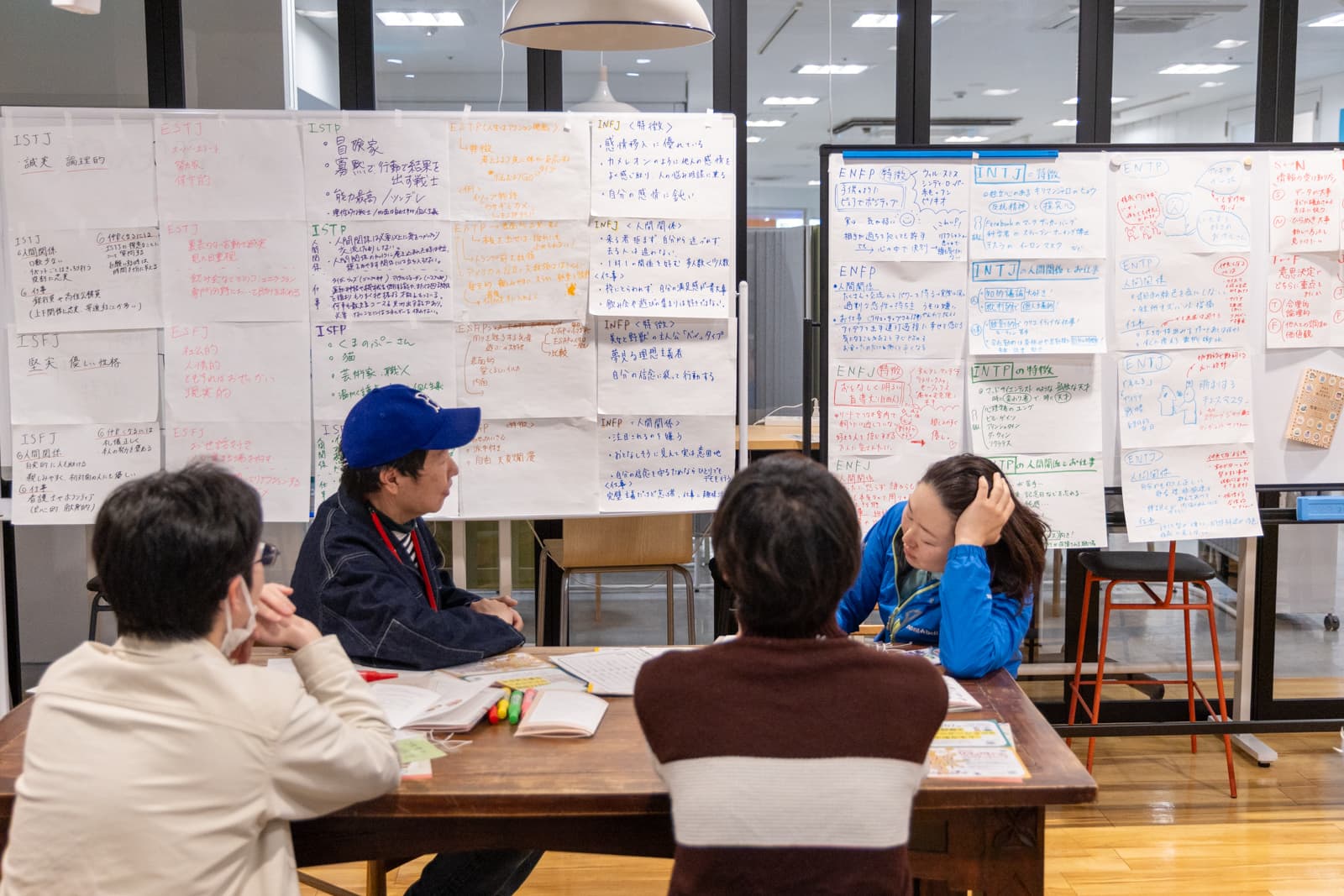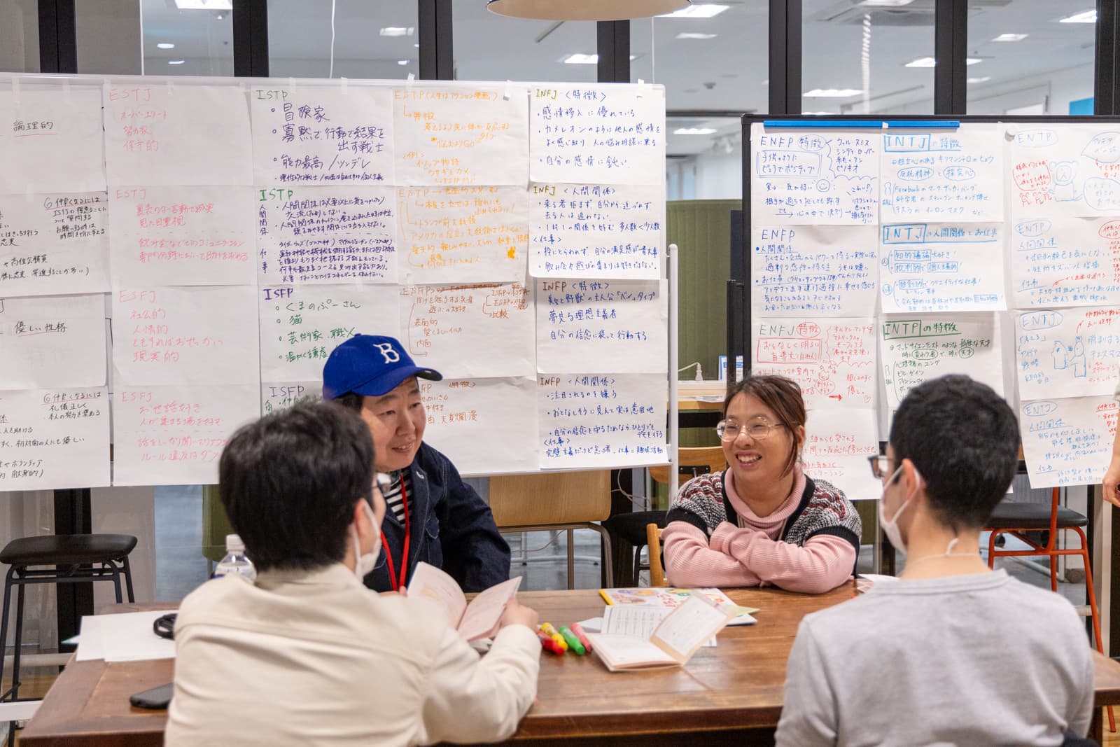 一方でIグループも静かというわけでは全くなく、朗らかにお話されている様子。MBTIでチームわけされることって日常ではあまりないと思うので、新鮮かつ共通点がある、ということで話しやすいのかもしれません。