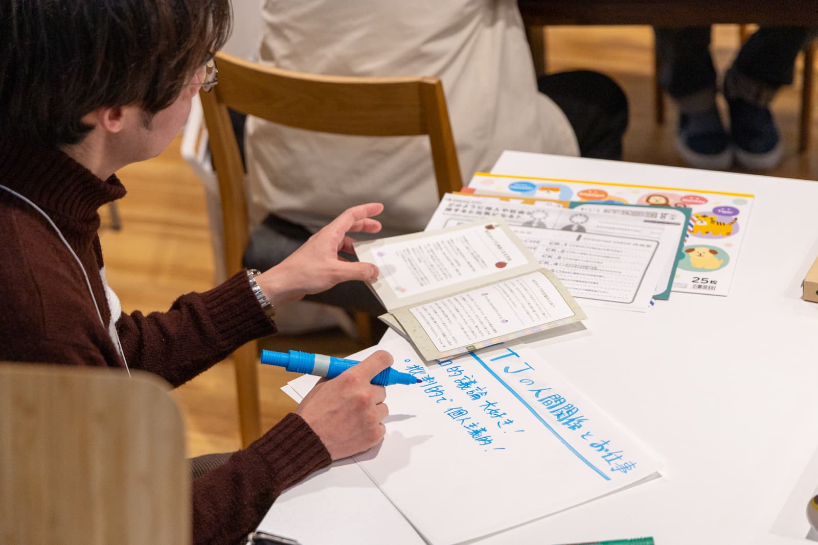スタッフが事前にパートごとに分けた冊子をご用意しているので、ランダムにおひとり2タイプ配ります!自分のタイプ以外の担当になった人がほとんどでした。
