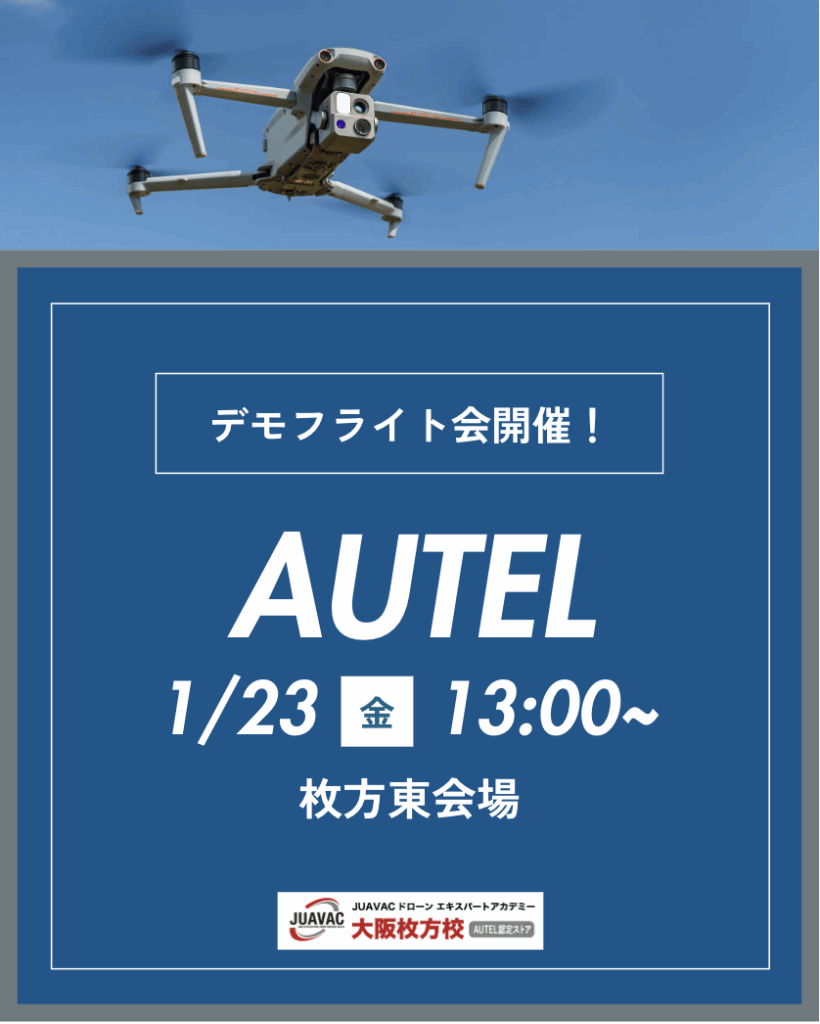 サービス【JUAVAC ドローンエキスパートアカデミー 大阪枚方校】AUTEL産業用ドローン デモフライト会 in 枚方 開催!