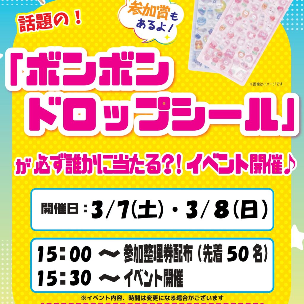 サービス【アミュージアム】話題の!「ボンボンドロップシール」が必ず誰かに当たる?!イベント開催♪