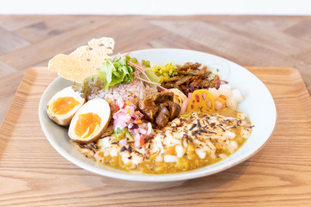 枚方市駅から少しばかり歩きますが、おしゃれな雰囲気で副菜たっぷりのスパイシーカレーが楽しめるカフェ。ぜひスコーンもデザートに!手土産も買えます。