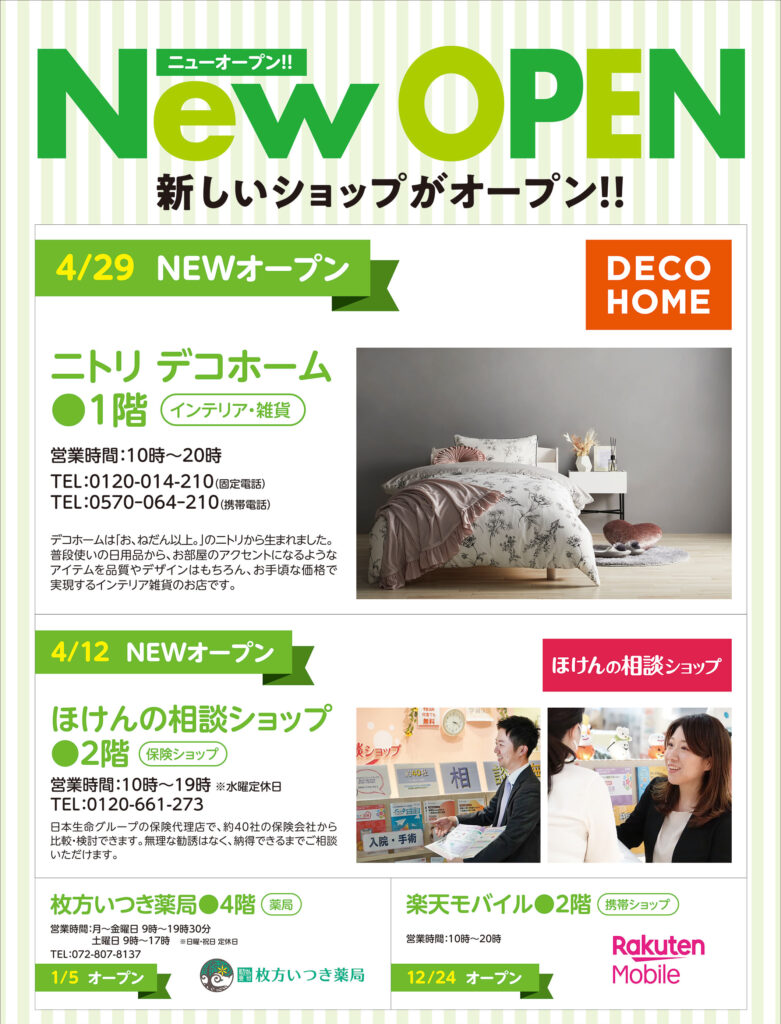 枚方ビオルネに新しくオープンする店舗をご紹介いたします!