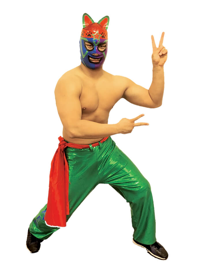 書初め大会には、初代ひらかたのヒーロー「ビオルネン」も登場!