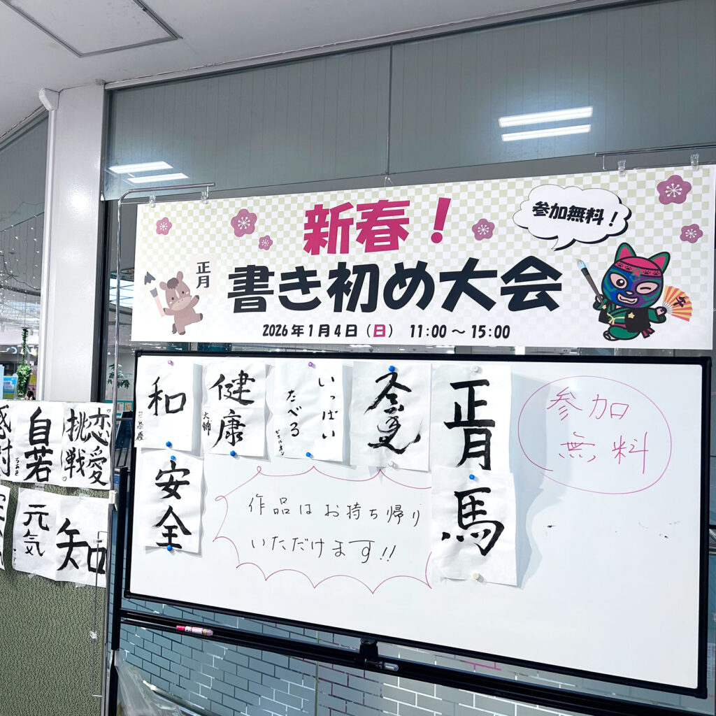 2026年1月4日(日)に「新春!書き初め大会」を開催いたしました。 会場の様子 ご来場いただいたみなさま、ありがとうございます! 3F掲示コーナー お客様よりいただいた作品は、3F moonlight前エスカレーター横に掲示させていただいております。 -