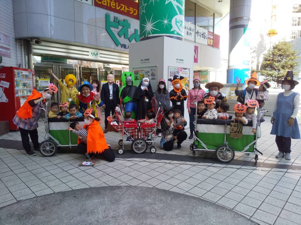 ビィーゴほいくえんの園児たちに、仮装したビオルネスタッフからお菓子をプレゼントしました。