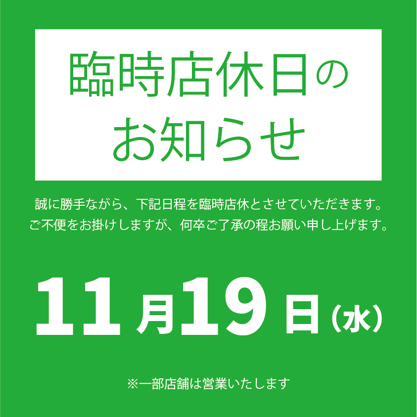 詳細については、「11月19日(水)営業店舗一覧」をご確認ください。