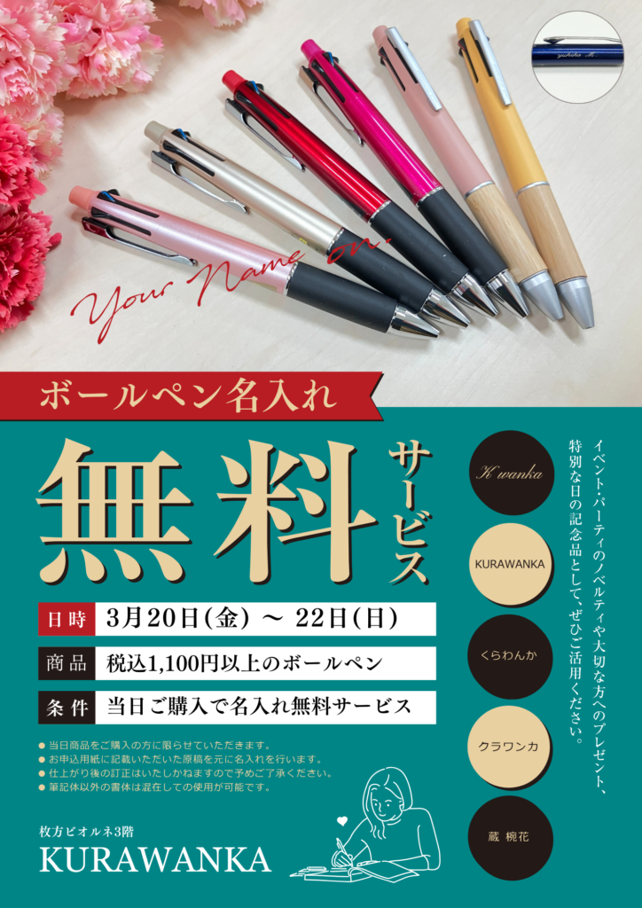 1,100円(税込)以上のボールペンご購入で名入れ無料サービスいたします。