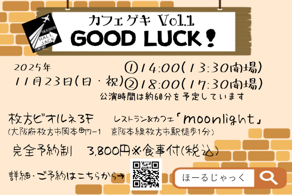【moonlight】劇団HALL JACK イマーシブシアター カフェゲキ!Vol.1「GOOD LUCK!」開催