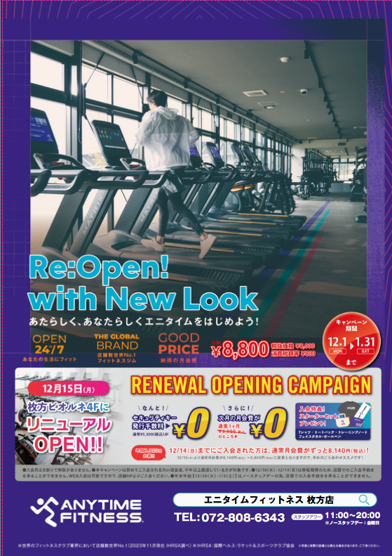 2025年12月15日をもちまして エニタイムフィットネス枚方店がリニューアルオープンいたしました!