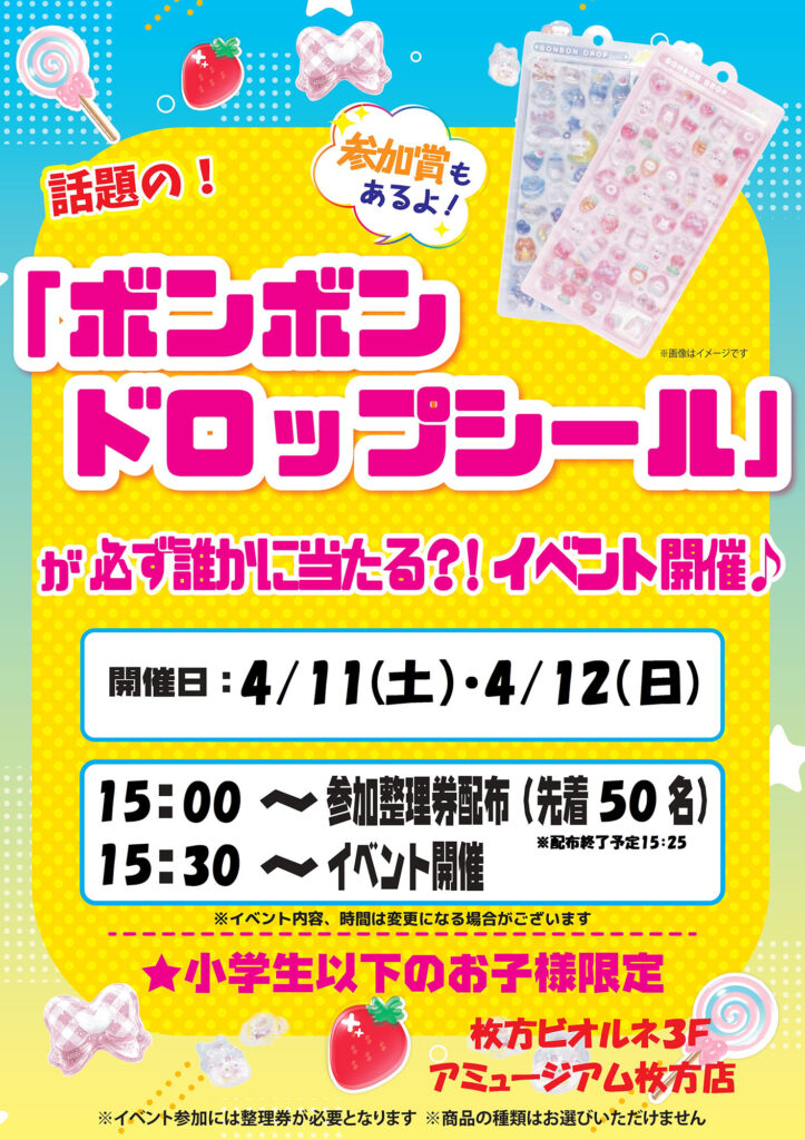 【アミュージアム】大好評!「ボンボンドロップシール」が当たるイベント開催♪