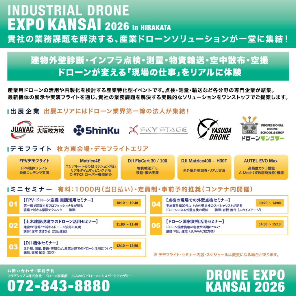 【JUAVAC ドローンエキスパートアカデミー 大阪枚方校】【5/22開催】産業ドローンEXPO KANSAI