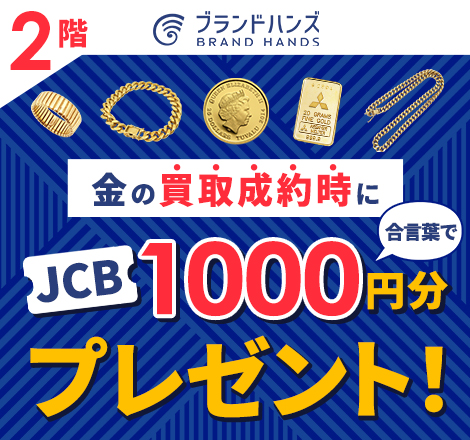 【2Fブランドハンズ】貴金属製品の買取でJCBギフト券1000円分プレゼント!
