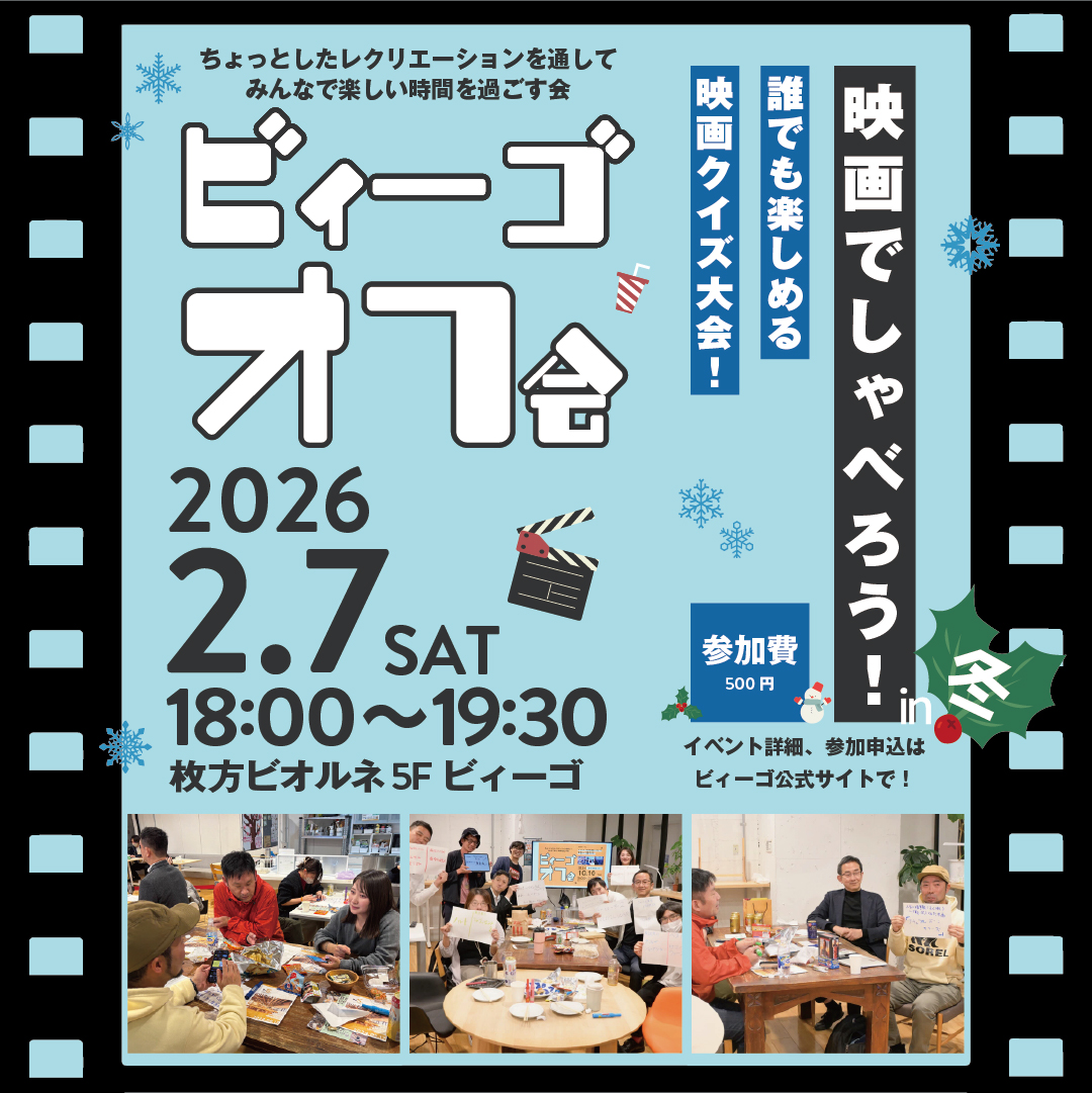 2026年2月7日 (土)18:00〜19:30 にビィーゴオフ会「映画でしゃべろう!in冬 誰でも楽しめる映画クイズ大会!」を開催します! このイベントは映画についてゆる〜くおしゃべりするシンプルなオフ会です!オススメ […]