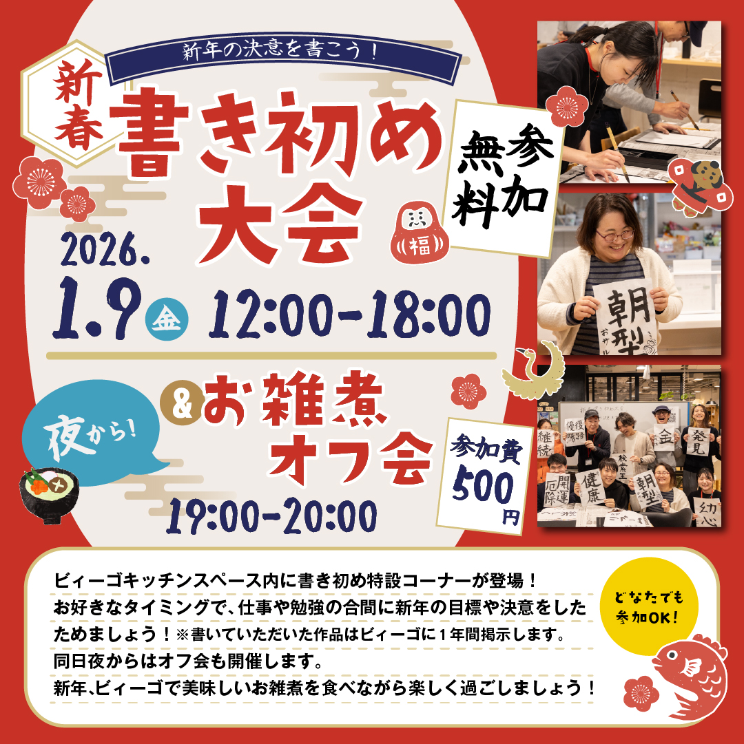こんにちは、ビィーゴイベントディレクターのながはらです!いつもご利用ありがとうございます! 2026年1月9日 (金) 12:00〜18:00 に毎年恒例のビィーゴオフ会 「新春書き初め大会〜2026年の決意を書こう!」 […]